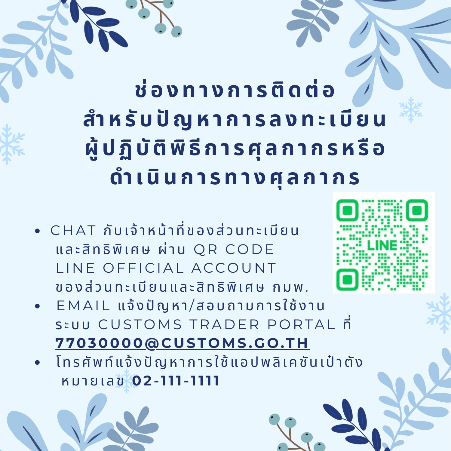 ช่องทางการติดต่อสำหรับปัญหาการลงทะเบียนผู้ปฏิบัติพิธีการศุลกากรหรือดำเนินการทางศุลกากร